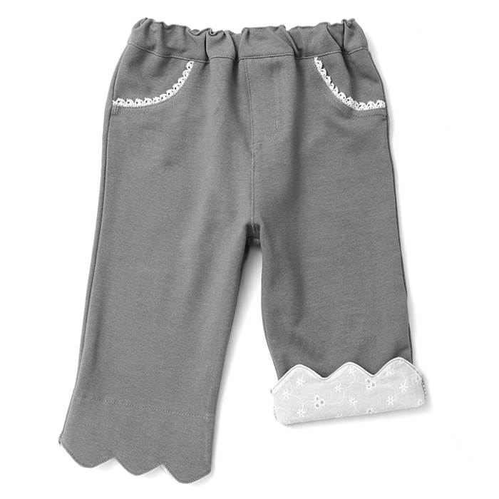 アイテム:その他ボトムス サイズ:80/90/95/100/110/120/130 素材:足口見返し布/綿100% グレー・ベージュ…本体/レーヨン71%・ポリエステル25%・ポリウレタン4% サックス…本体/レーヨン78%・ポリエステル17%・ポリウレタン5% ニットツイル×ローンレース ■商品サイズ(商品の仕上がり寸法です) 表示(cm)809095100110120130 ウエスト幅20202021222324 腰幅28293030313334 股上19191918192122 股下20232630333740 足口幅13131414151617 ※股下は裾をのばした状態の長さになります。